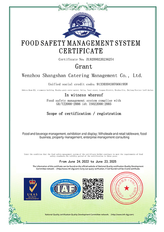 首頁>企業資質 > 食品安全管理體系證書 英文版企業資質