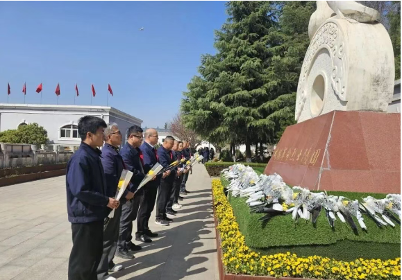 松柏蒼翠映英烈,豐碑矗立鑄忠魂。在莊嚴肅穆的革命烈士紀念碑前,全體黨員整齊列隊、神情肅穆。在黨支部書記白寧博的帶領(lǐng)下,大家向革命先烈敬獻鮮花,集體默哀三分鐘,表達對革命先烈的深切緬懷與崇高敬意。