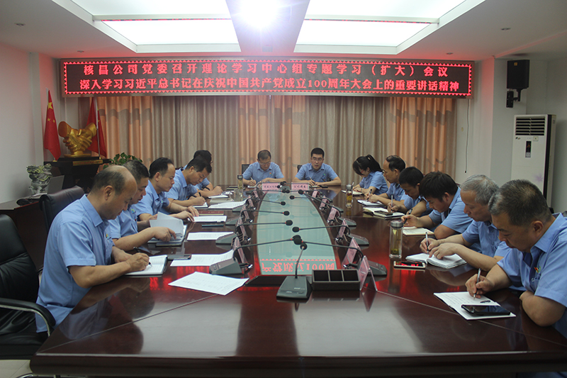 7月9日,核昌公司召開(kāi)2021年第七次黨委理論學(xué)習(xí)中心組專(zhuān)題學(xué)習(xí)(擴(kuò)大)會(huì)。公司領(lǐng)導(dǎo)班子成員、黨委工作部部長(zhǎng)、各黨支部書(shū)記、團(tuán)委書(shū)記參會(huì)。會(huì)議由黨委書(shū)記、董事長(zhǎng)王超宏主持。