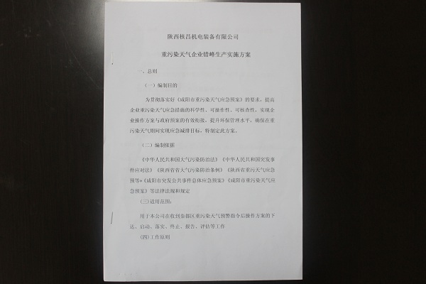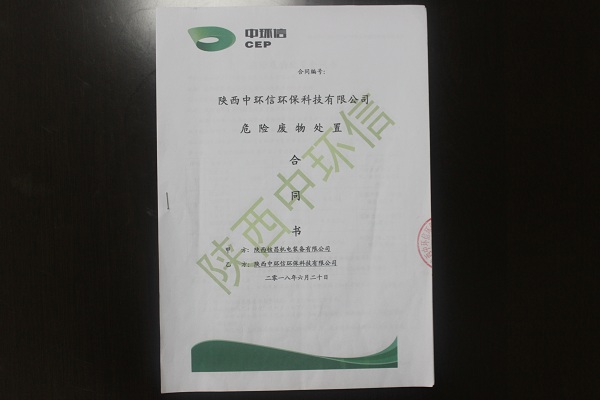 我公司屬機(jī)電一體化、機(jī)械加工等產(chǎn)業(yè)的生產(chǎn)及經(jīng)營活動, 現(xiàn)階段主要的危險廢物包括:油漆桶、廢機(jī)油、乳化液、噴漆、噴砂。油漆桶、廢機(jī)油、乳化液等危險廢物處置由陜西中環(huán)新環(huán)保有限公司承包處理;噴漆、噴砂房等由公司投入大量資金進(jìn)行升級改造,經(jīng)西安圓方環(huán)境衛(wèi)生檢測技術(shù)有限公司監(jiān)測,所排廢氣均達(dá)到國家標(biāo)準(zhǔn)。同時制定《重污染天應(yīng)急預(yù)案》、《重污染天氣企業(yè)錯峰生產(chǎn)實施方案》,為改善環(huán)境、大氣質(zhì)量作出積極的貢獻(xiàn)。